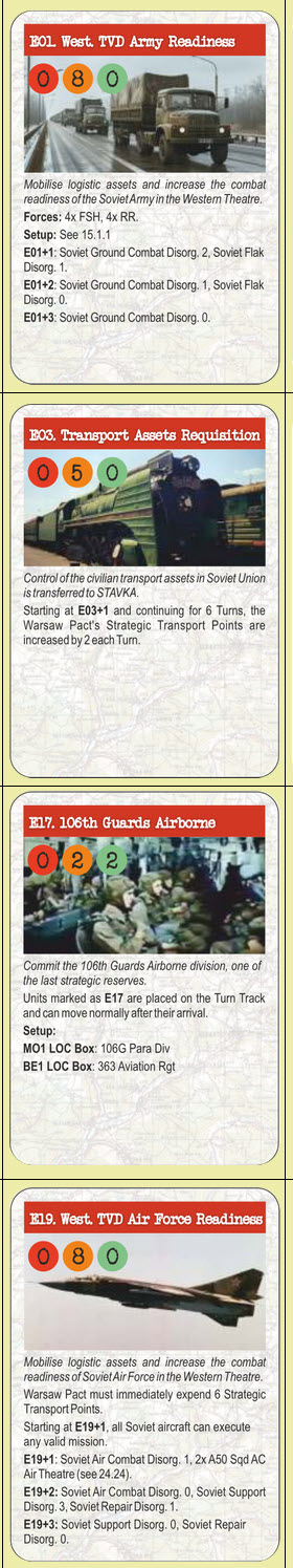 5. WP reveals the cards still unrevealed: they are E01 – West TVD Army Readiness and E03 – Transport Assets Requisition
