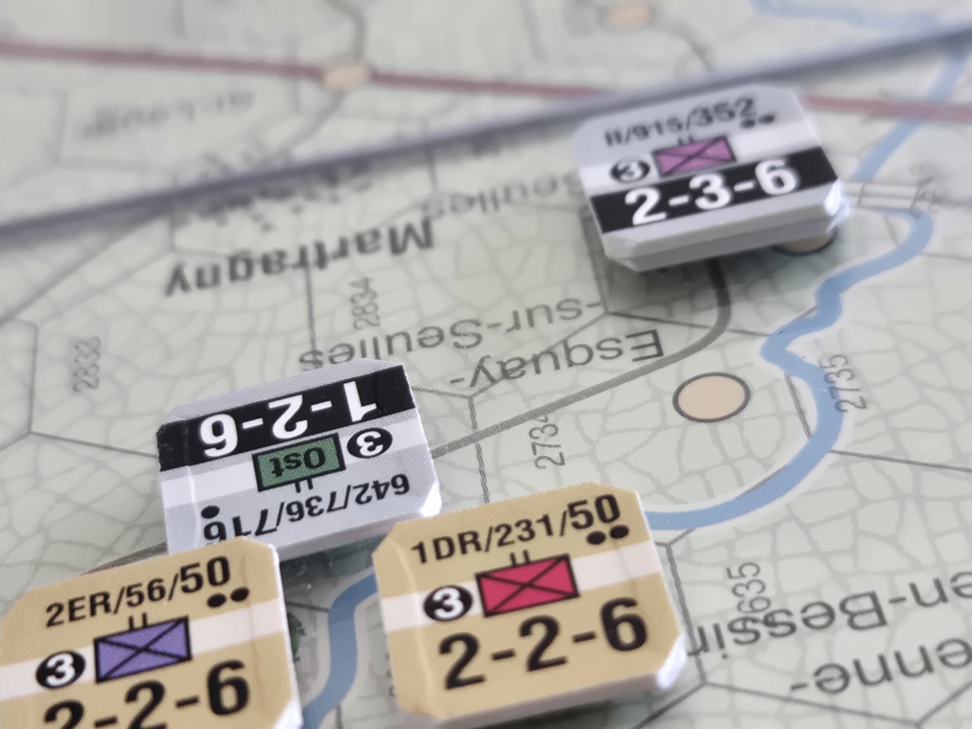 As we recall this game is the simulation of the Battle of Normandy runs with a turn sequence that goes night turn [night interphase ++], and that’s where we started, went through all the weather and mulberries execution and working out how they work, replacements and reinforcements then the air allocation. We then moved to the Allied Night player turn, the German Night player turn, which basically consisted of a fair bit of movement and one or two combats that needed to be taken care of.